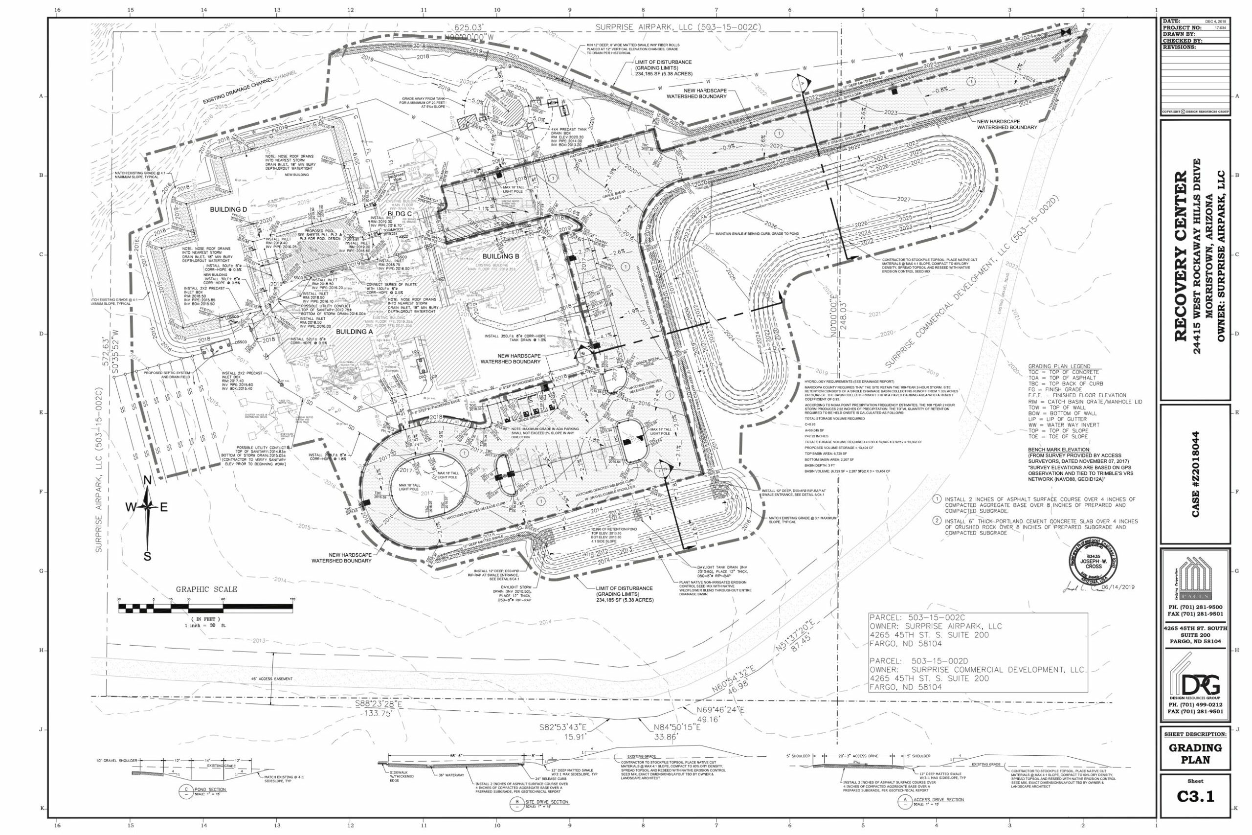 CES provided professional services for the Recovery and Rehabilitation Center in Morristown Arizona 35 miles northwest of Phoenix. This development consisted of a 70 bed drug rehabilitation center, with parking, water storage and sewer septic system. CES provided all onsite Civil Plans, site plan layout, grading and stormwater design, SWPP package, water and sewer utility design plans, fire suppression storage tank with pump system, domestic water tank with pump system, fireline, septic tank and leach field and offsite roadway plans per Maricopa County standards.